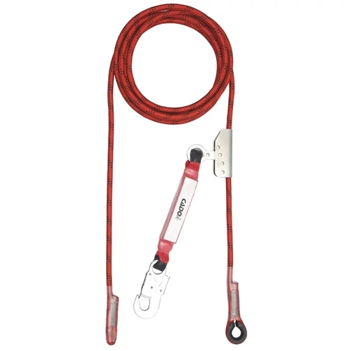 • 10 m hosszú, 12 mm átmérőjű, körszövött poliamid kötél, felső végén kötélszíves hurokkal, alsó végén biztonsági záró varrással, tömlővel