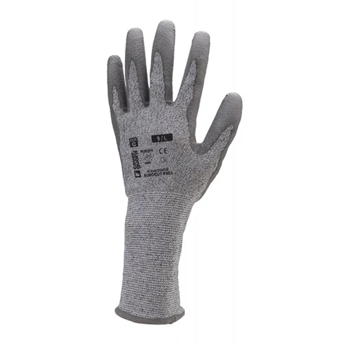 Szerelőkesztyű vágásbiztos HPPE szürke PU tenyérrel 9