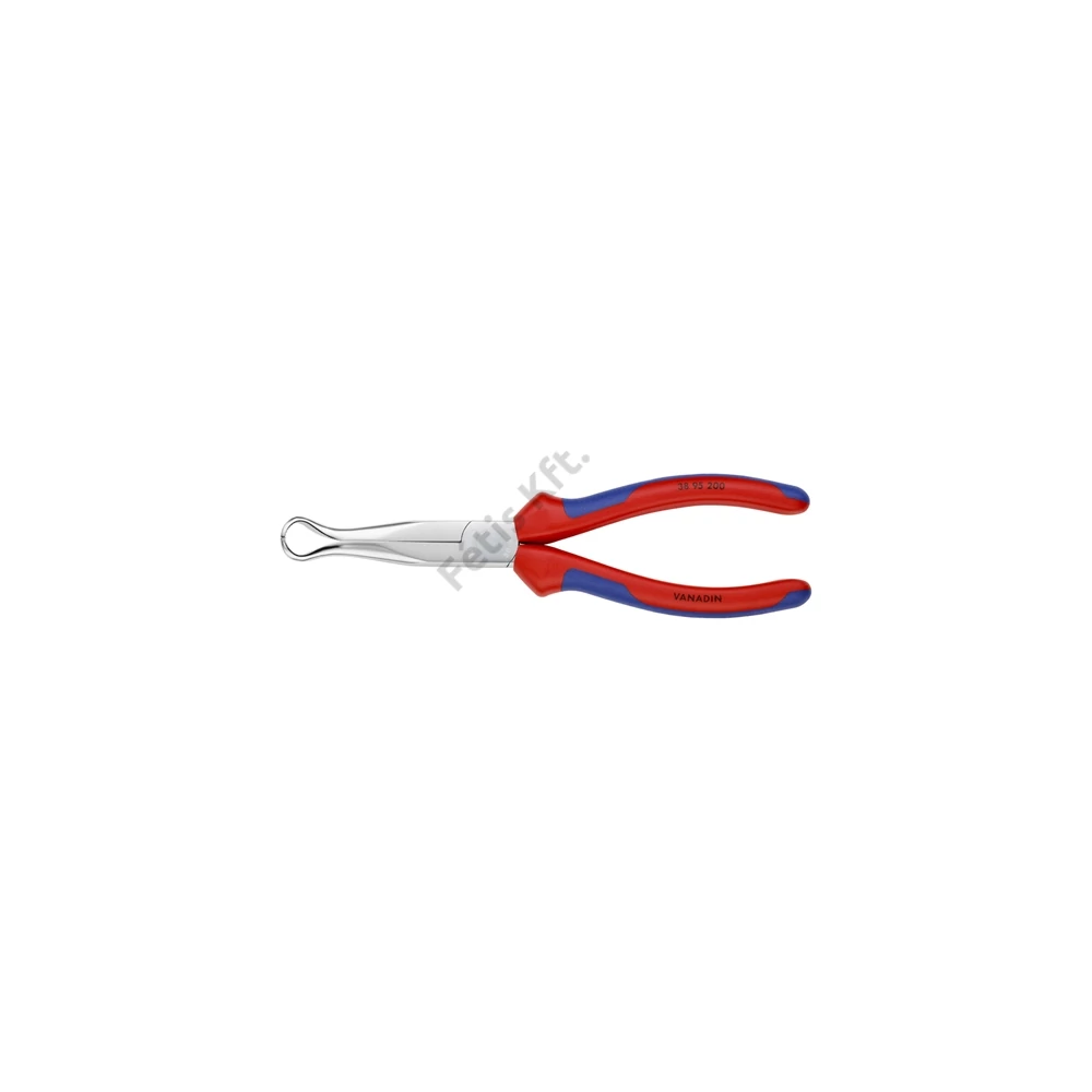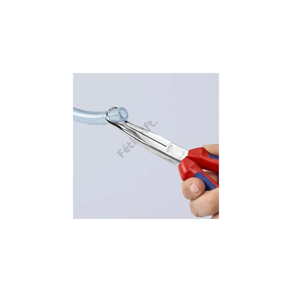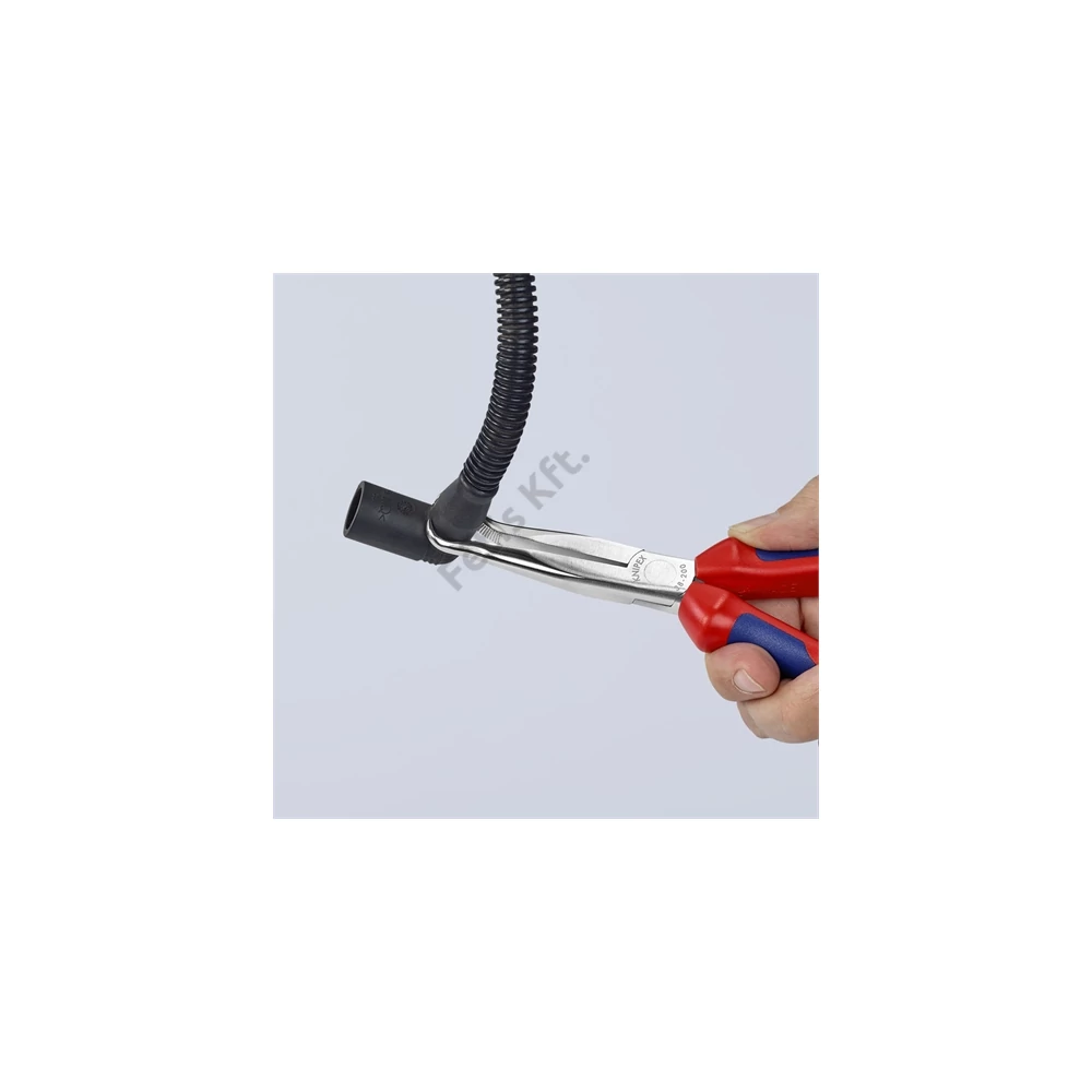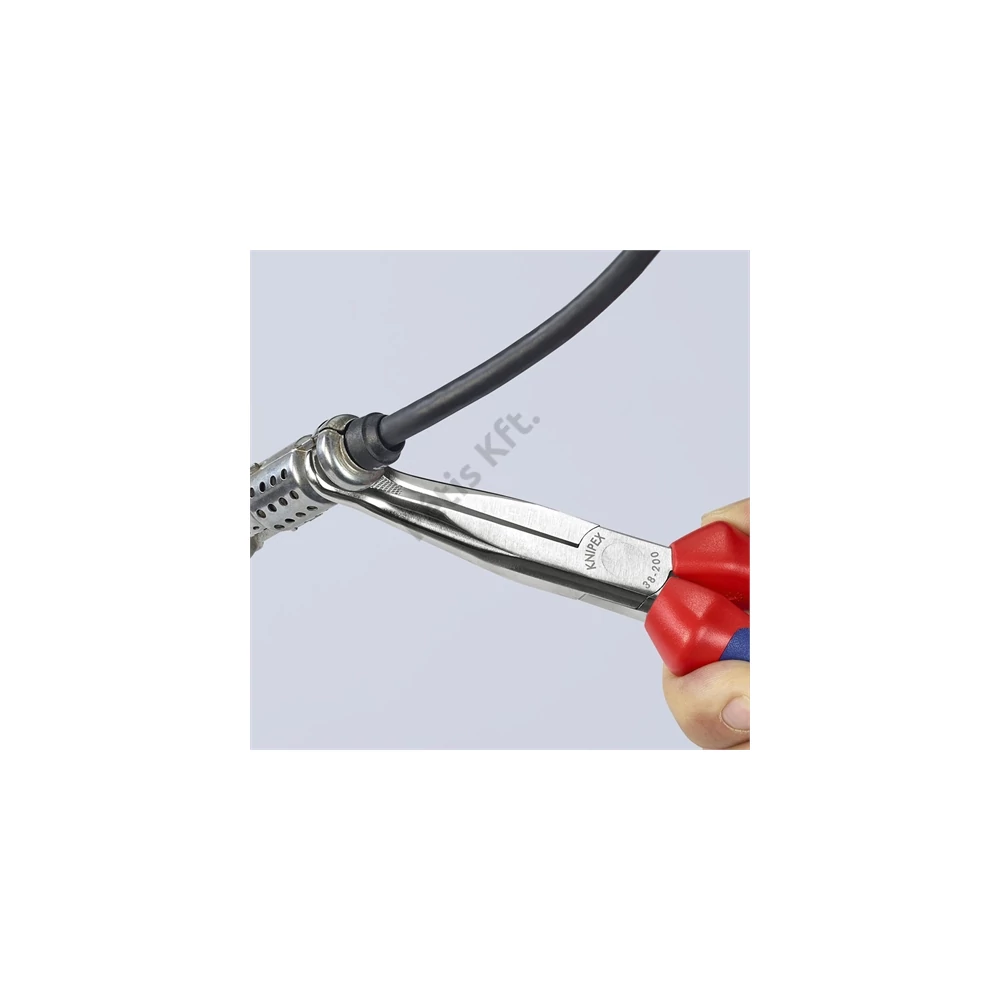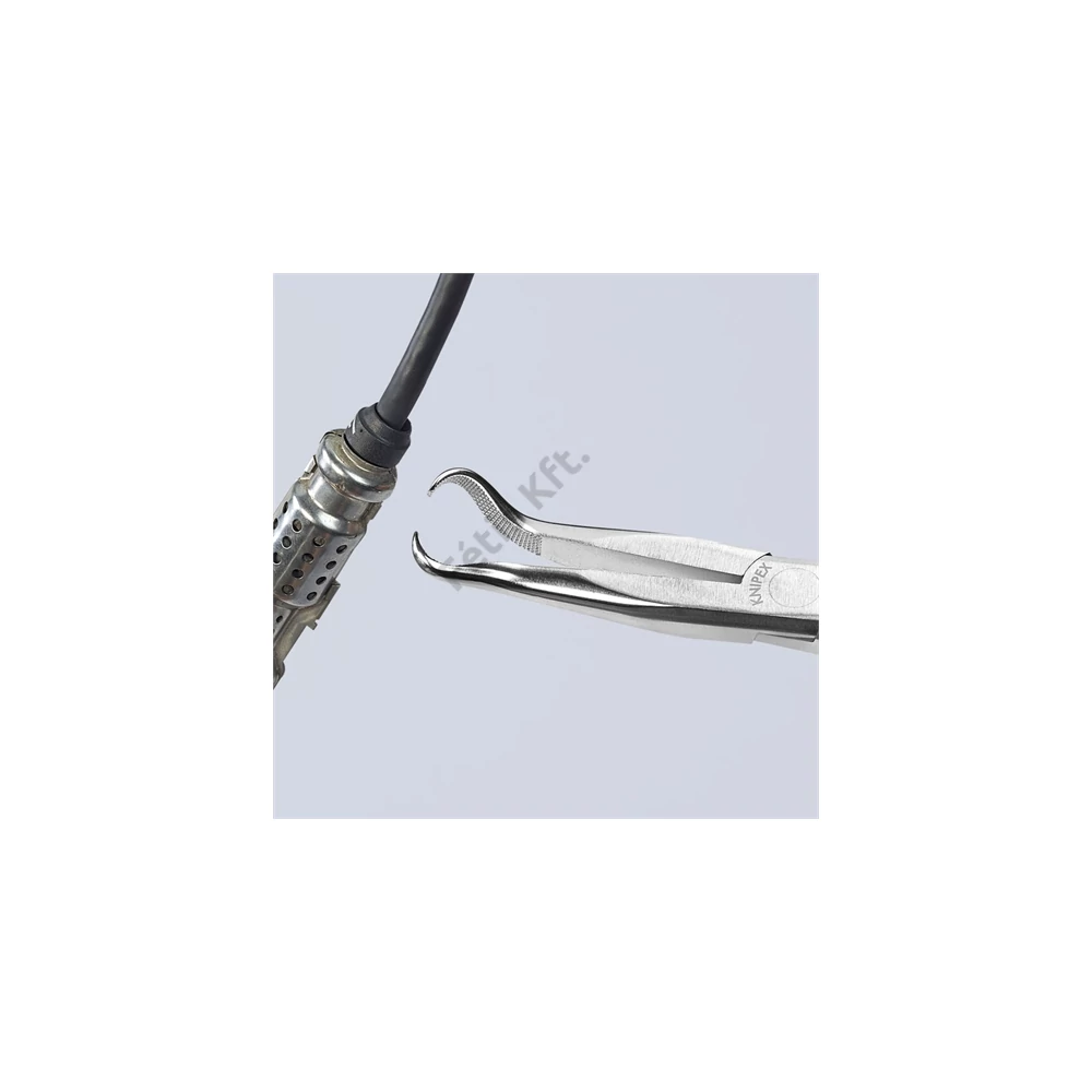 Műszerész fogó Nagy hajlítószilárdságú fogóhegyek. 45° lesarkított, fél-kerek, hosszú pofák, gyújtógyertya pipák és kerek alkatrészek megfogásához is (gyújtógyertyadugó-kihúzó fogó).