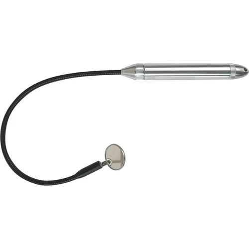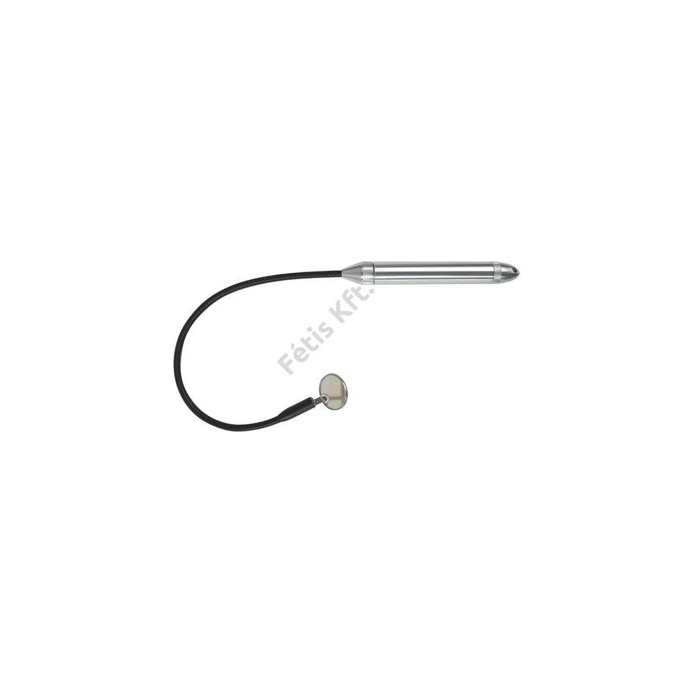 Kivitel: Masszív alumíniumból, flexibilis tengellyel. A LED világítófej fehér fényt hoz létre és fröccsenő vízzel szemben védett, a mágnes felcsavarozható. Ezen felül a fej törhetetlen nemesacél tükörrel rendelkezik. Szállítás elemekkel.
