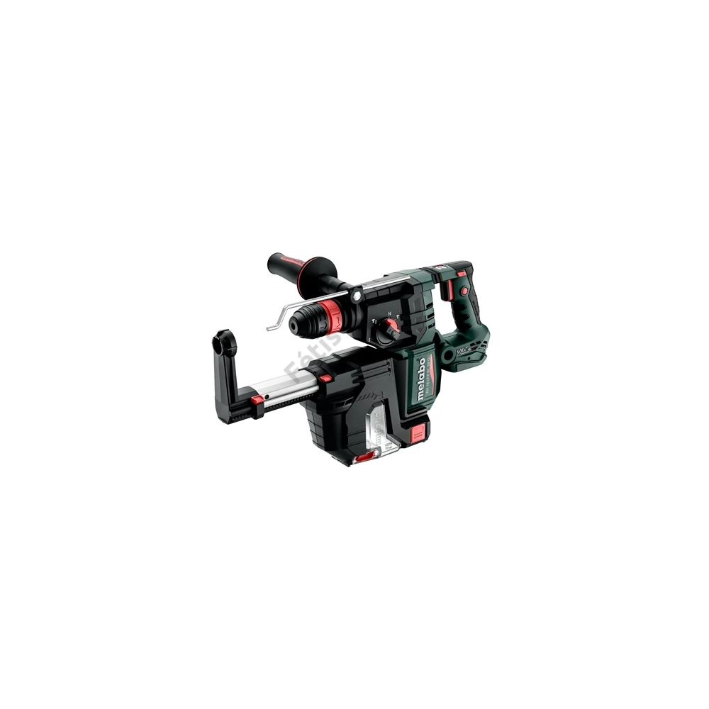 Beépített porelszívás - ISA 28, Cserélhető szívófej, SDS Plus száras szerszámokat fogadó kalapácsfúró tokmány, Gyorsbefogó fúrótokmány hengeres szerszámszárra, Gumírozott kiegészítő markolat, Fúrásmélység-ütköző, metaBOX 185 XL, akkuegység és töltő nélkül
